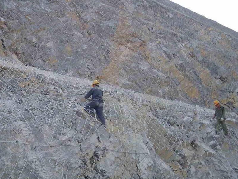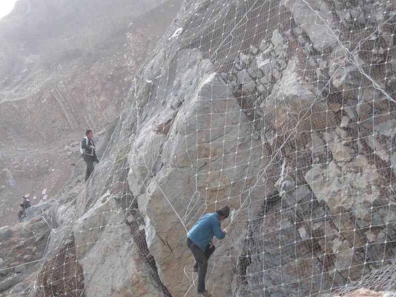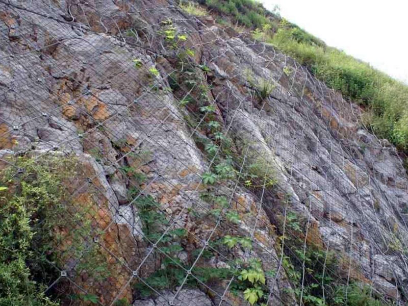 每片鋼絲繩網交叉的鋼絲繩采用不銹鋼卡扣、合金卡扣等材質固定。鋼絲繩網都是采用熱鍍鋅防腐方式處理這樣可以有效的保證主動防護網系統的使用壽命,在正常環境下一般為35-50年。